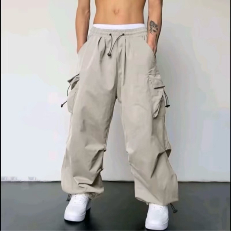 Celana Cargo Pria Panjang Model Terbaru Highwaist Korean Style Casual Tali Serut Pinggang Karet