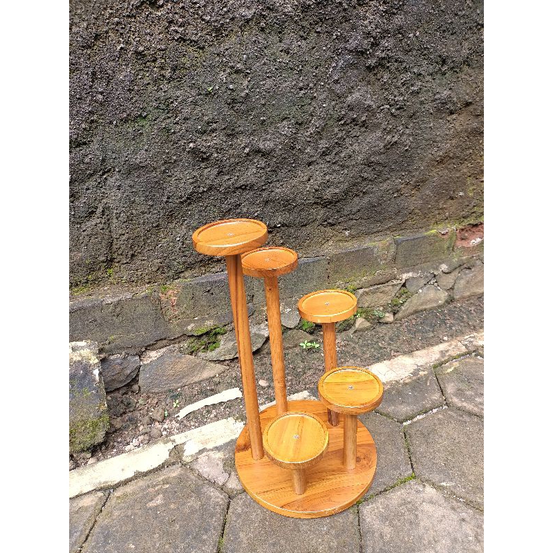 Rak Display Bunga Sekulen Lingkaran 5 Tingkat Natural Kayu Jati Doff