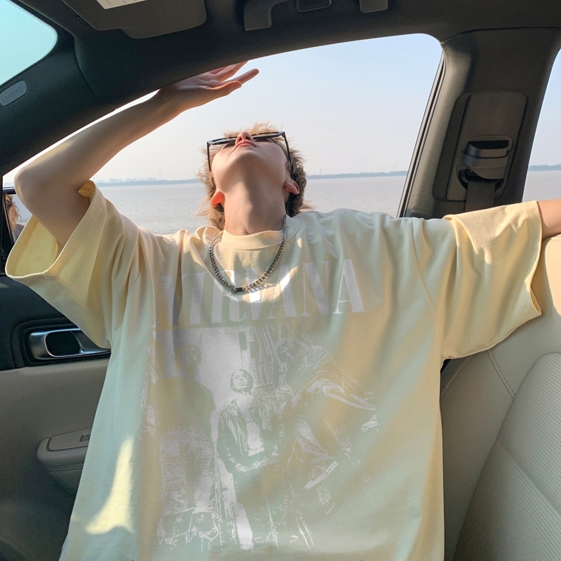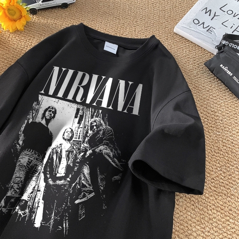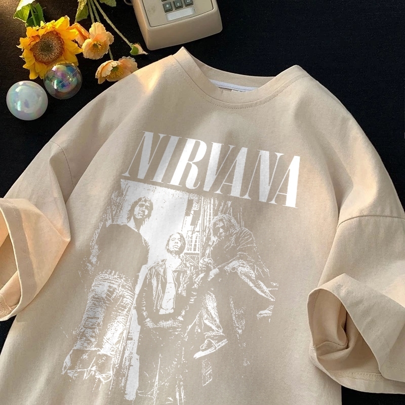 pushBUTTON Baju Nirvana Vintage T-shirt Pria Streetwear Kaos Skena Oversize Distro Cowok Keren Unisex