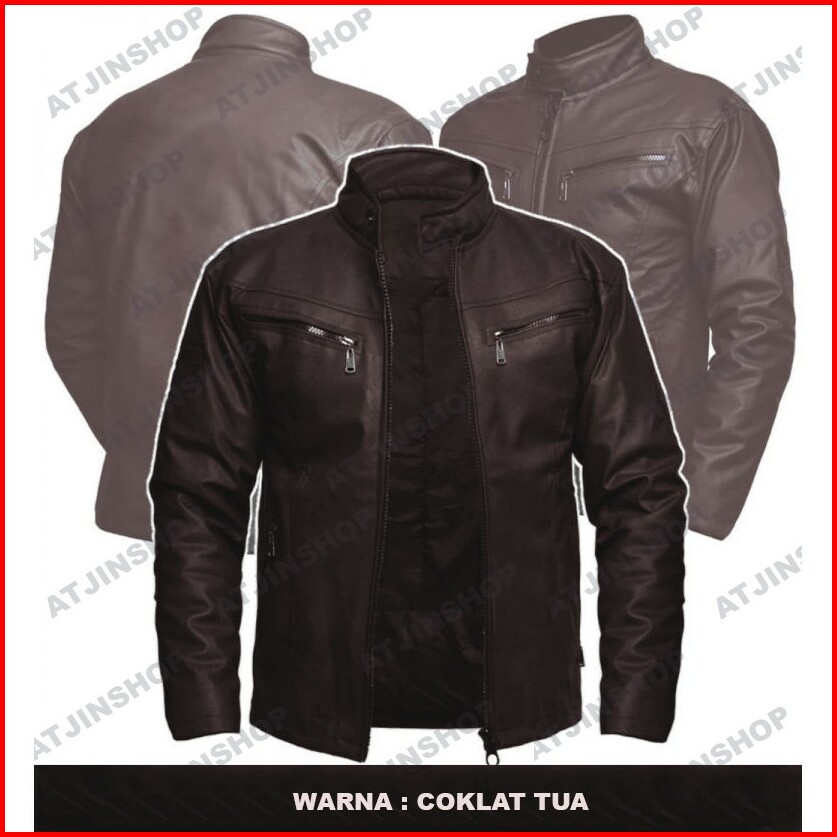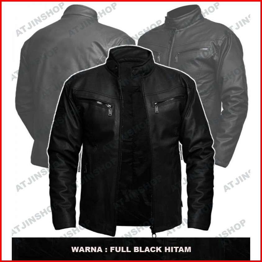 Atjin-jaket Kulit Motor Pria Model Racing Bahan Ferrari Full Black Dan Full Brown