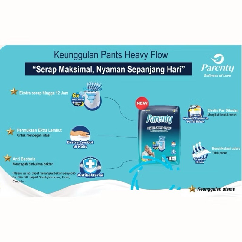 PARENTY EKSTRA SERAP PANT HEAVY FLOW | POPOK DEWASA ADULT CELANA M 10 L 8 XL 8 | M10 L8 XL8