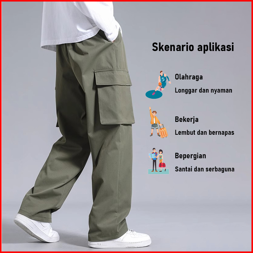 Celana Cargo Panjang Pria Korean Premium Loose Pants Outdoor Baggy Cargo Pants Celana Panjang Pria