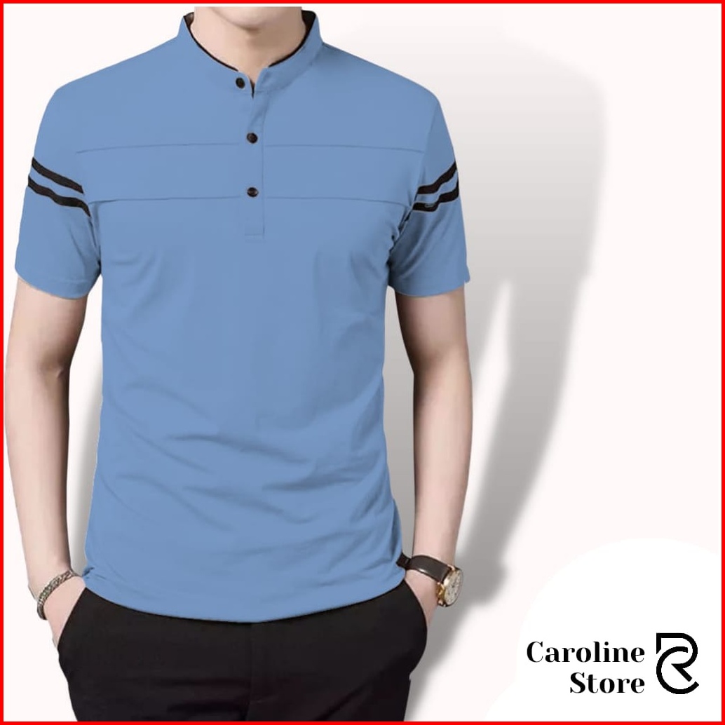 Cuci Gudang Kaos Pria Kerah Shanghai Lengan Garis Pendek