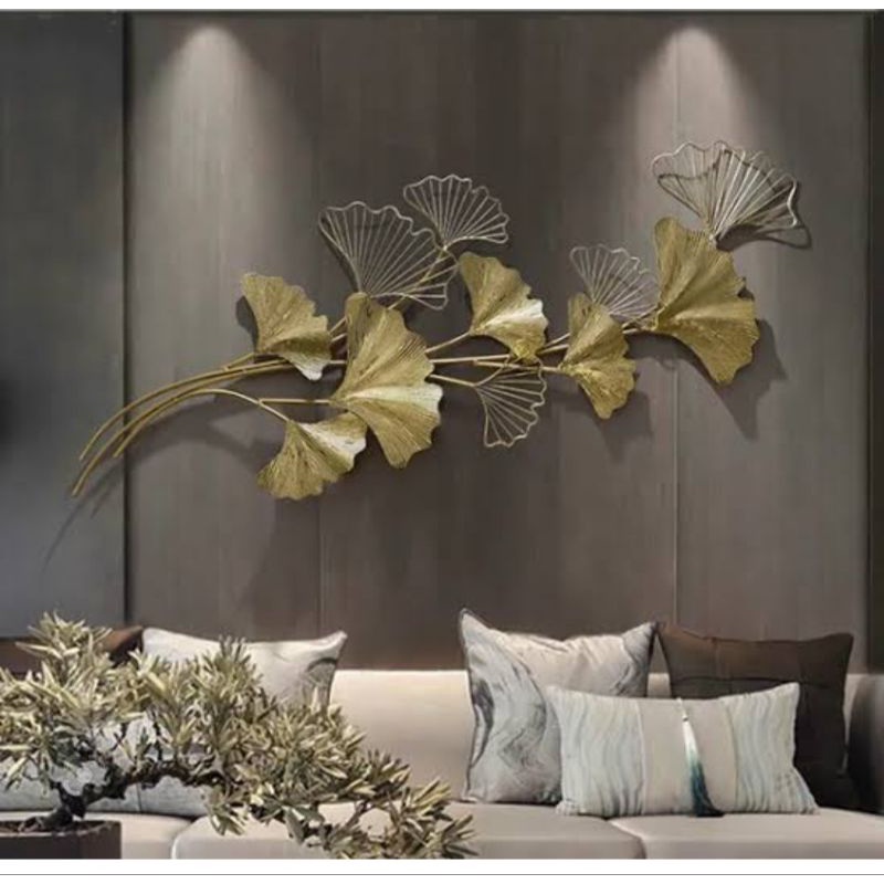 STAR PROJECT WallDecor Hiasan Dinding Frame Metal Iron Gold / Daun EMAS Leaf Ginko/ WALL Decor Nordic pajangan besi / pa