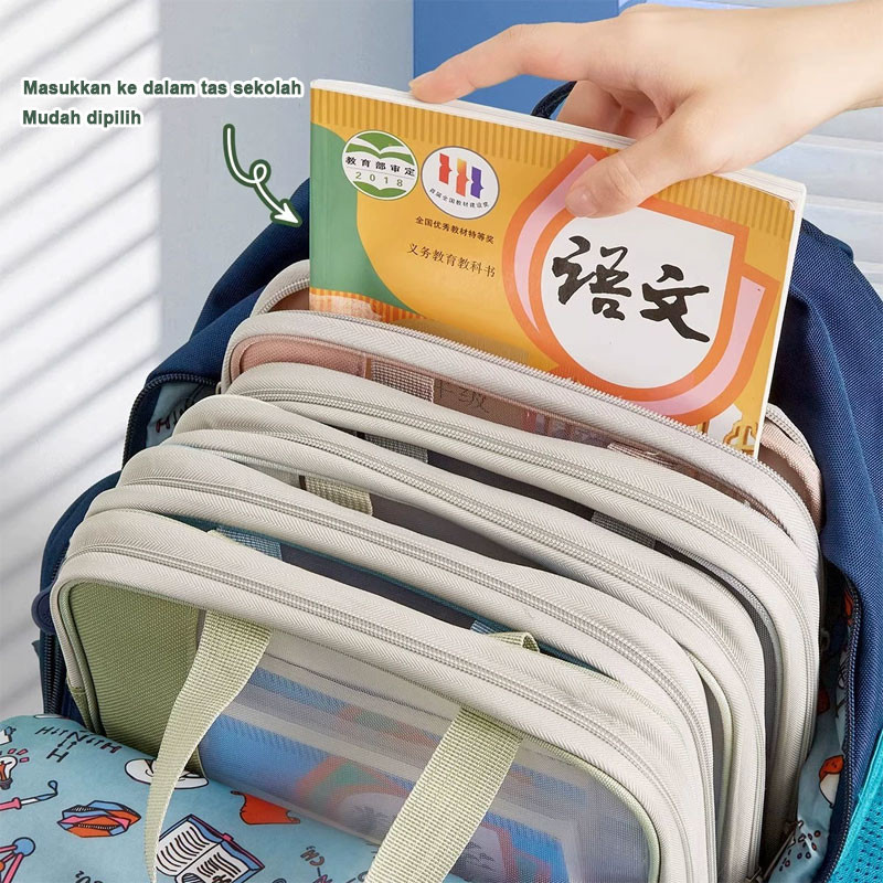 Document Bag Transparan 3 Lapis / Tas Folder Portabel Jaring Penyimpanan Kertas / File Holder Lucu/ Map Dokumen