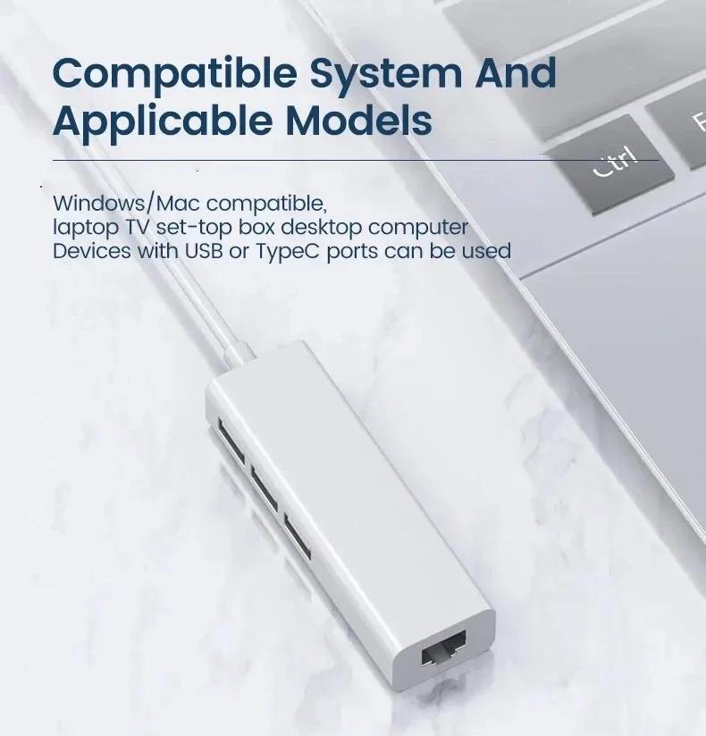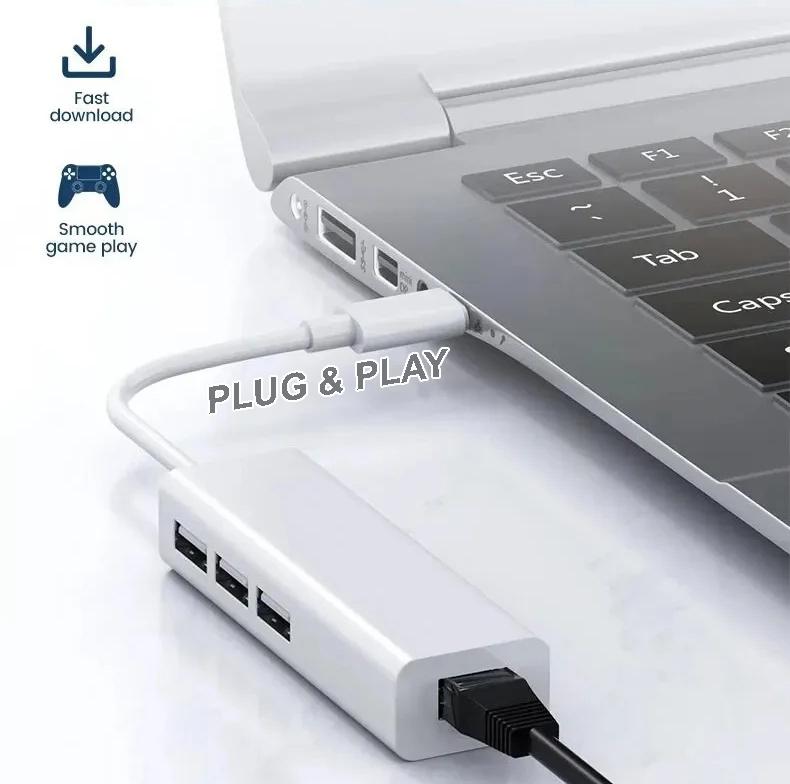 Type C To Lan Ethernet RJ45 + USB 3 Port USB HUB Type-C To LAN Card For PC Laptop Macbook Mibox Etc