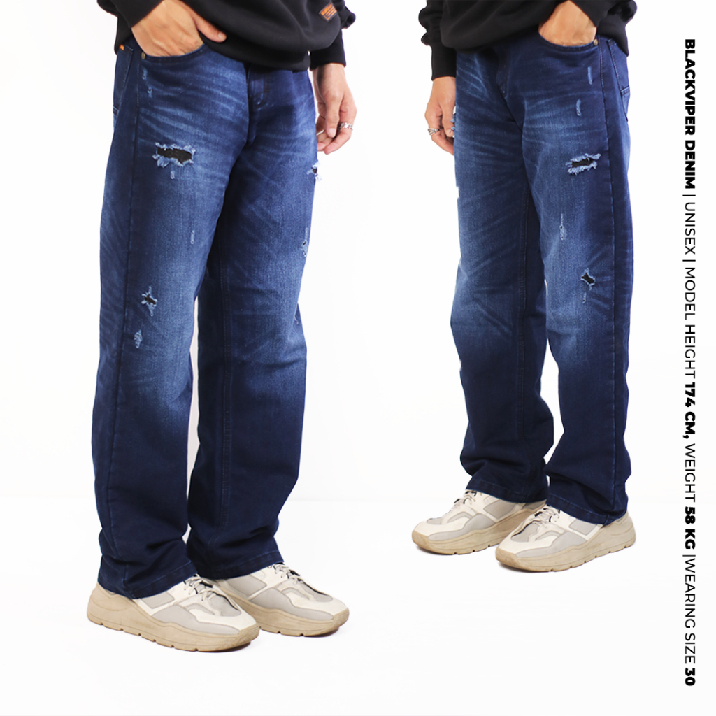 BLACKVIPERDNM Celana Baggy Wisker Loose Jeans Pria