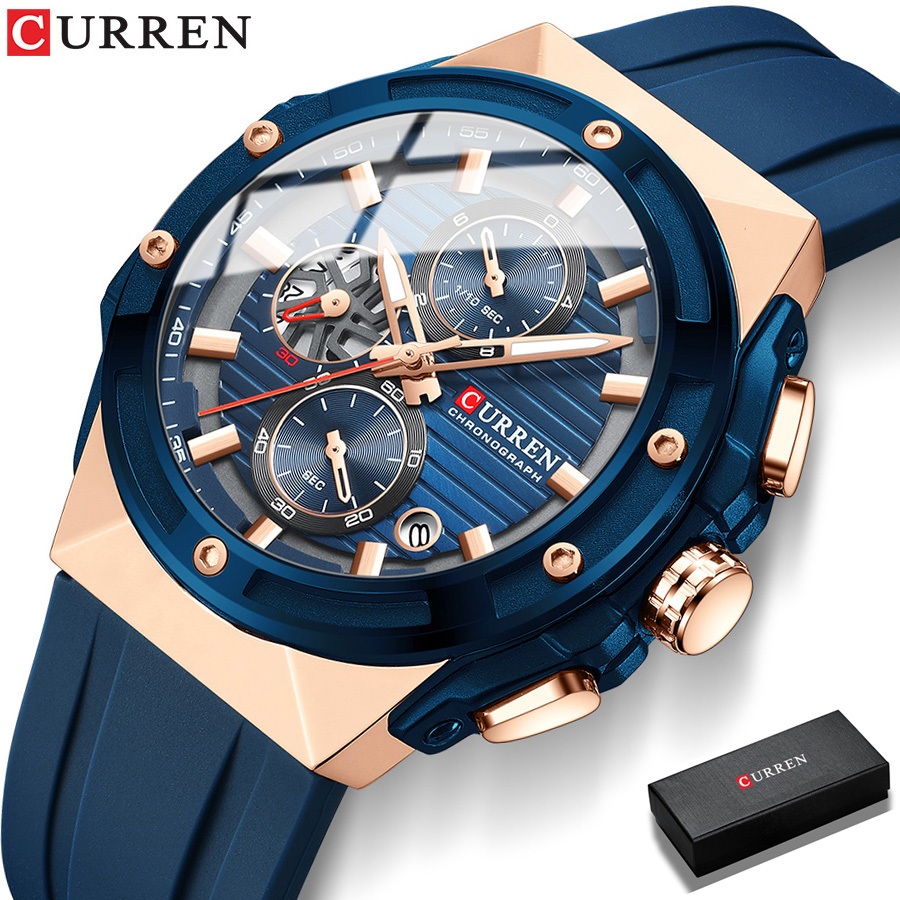 CURREN Jam Tangan Pria Anti Air Kuarsa Kronograf Bercahaya Original Tali Silikon Jam Tangan Cowok