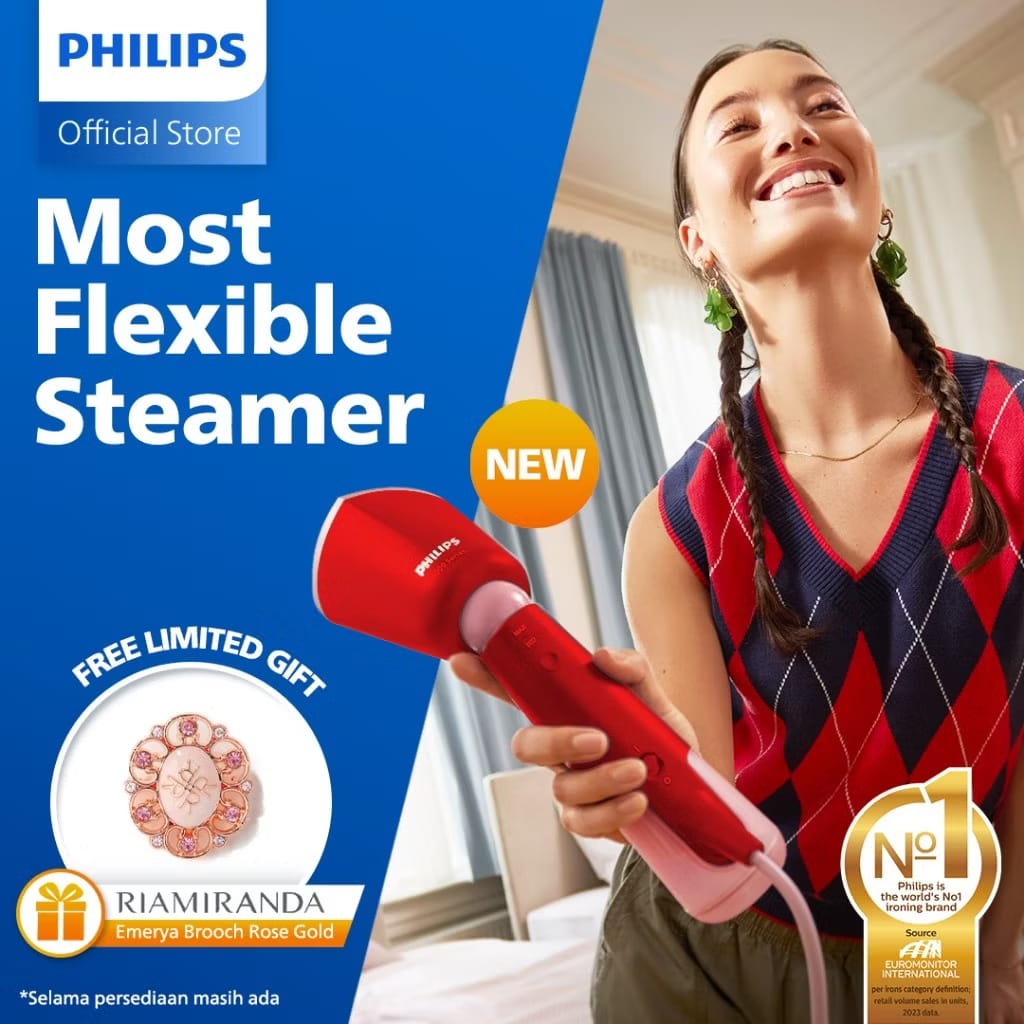 New! Philips Handheld Steamer 5000 Series - STH5020/40 Merah - Setrika Uap Listrik Paling Fleksibel - Portabel