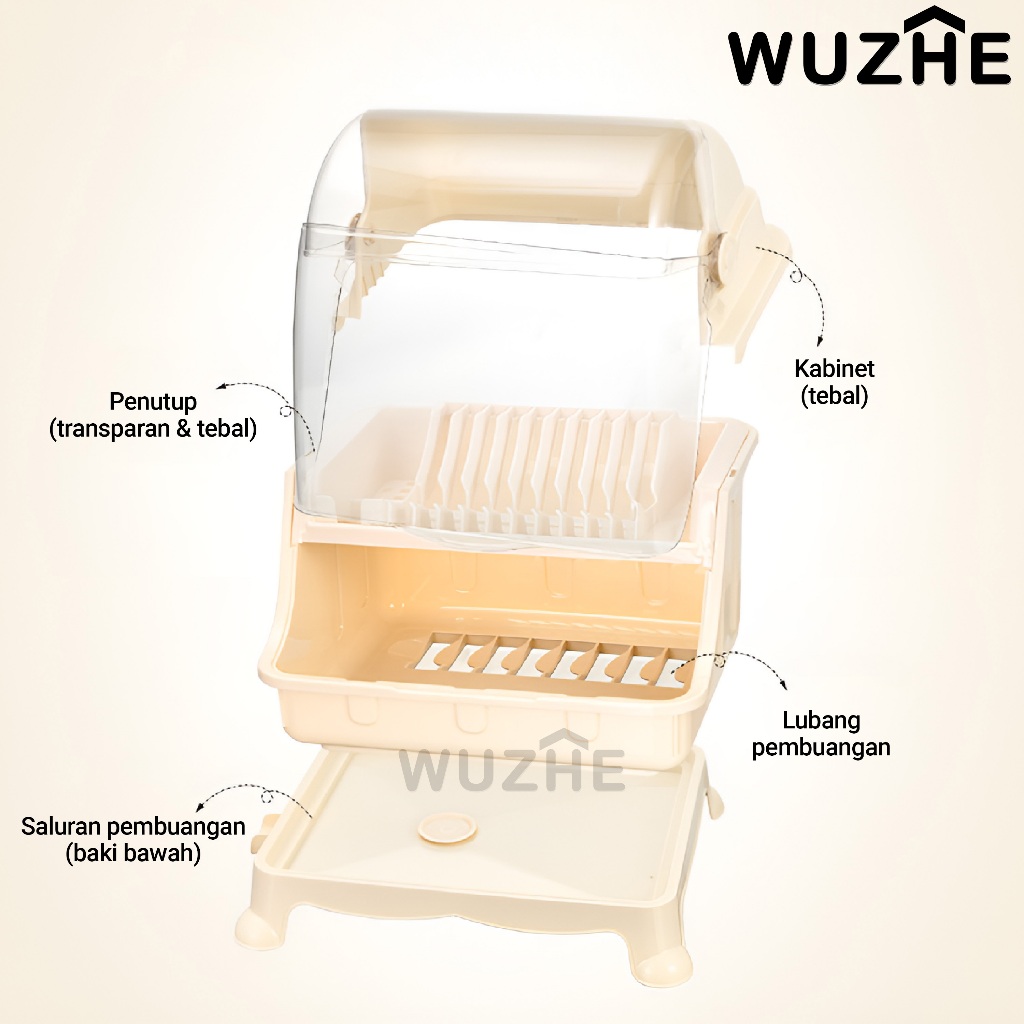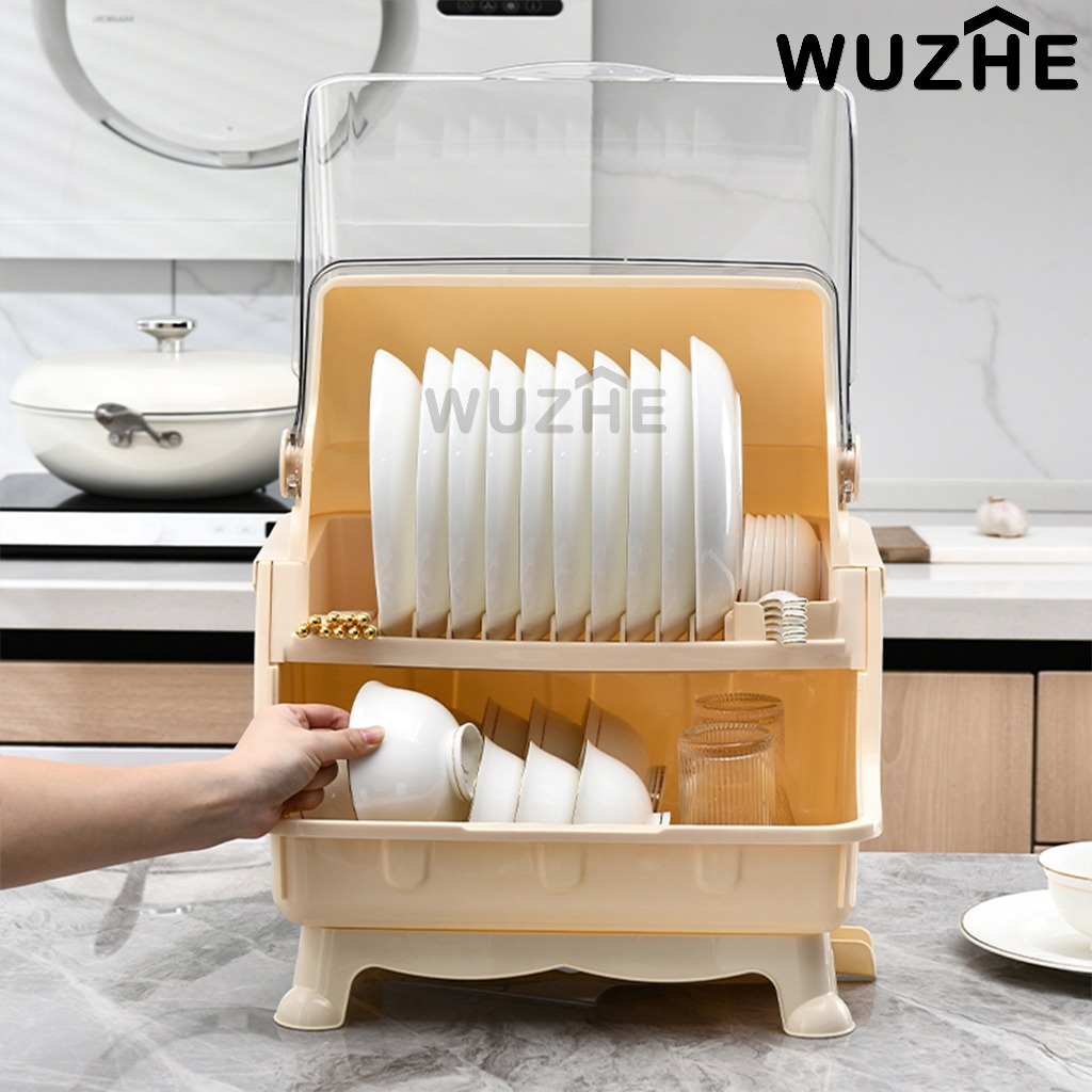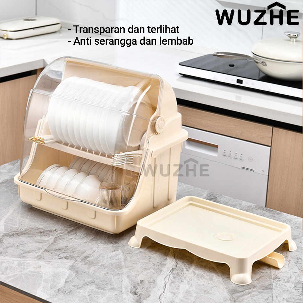 WUZHE Rak Piring Dapur / Rak Pengering Piring Tertutup Anti Debu