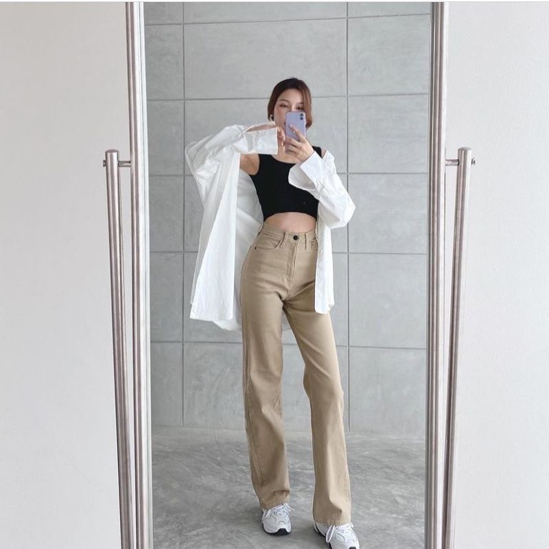 (Gratis Ongkir) Celana highwaist wanita jeans kulot kekinian