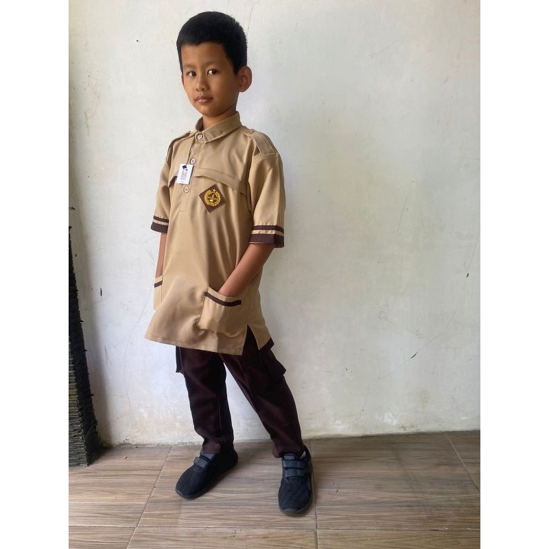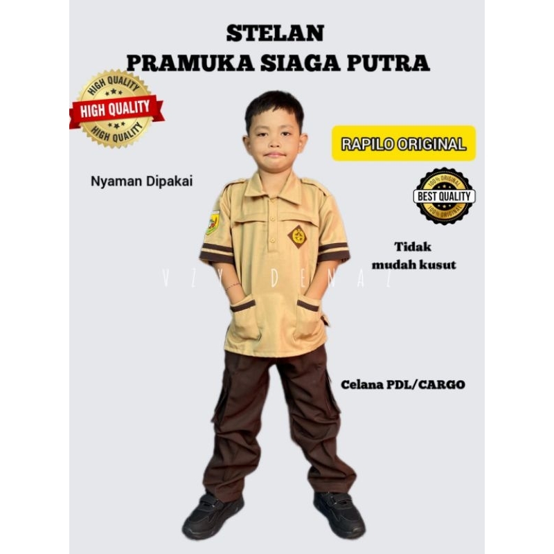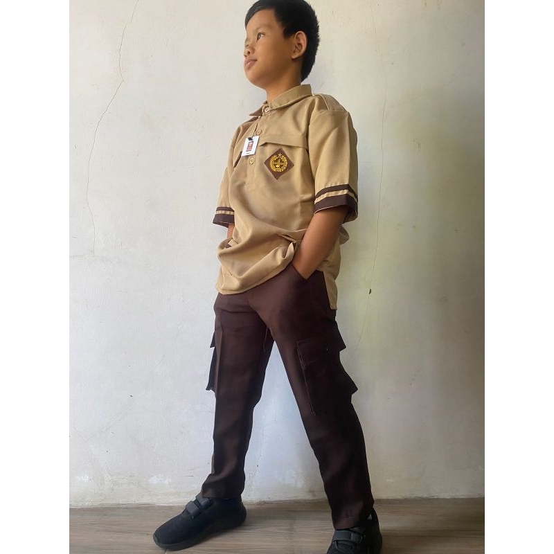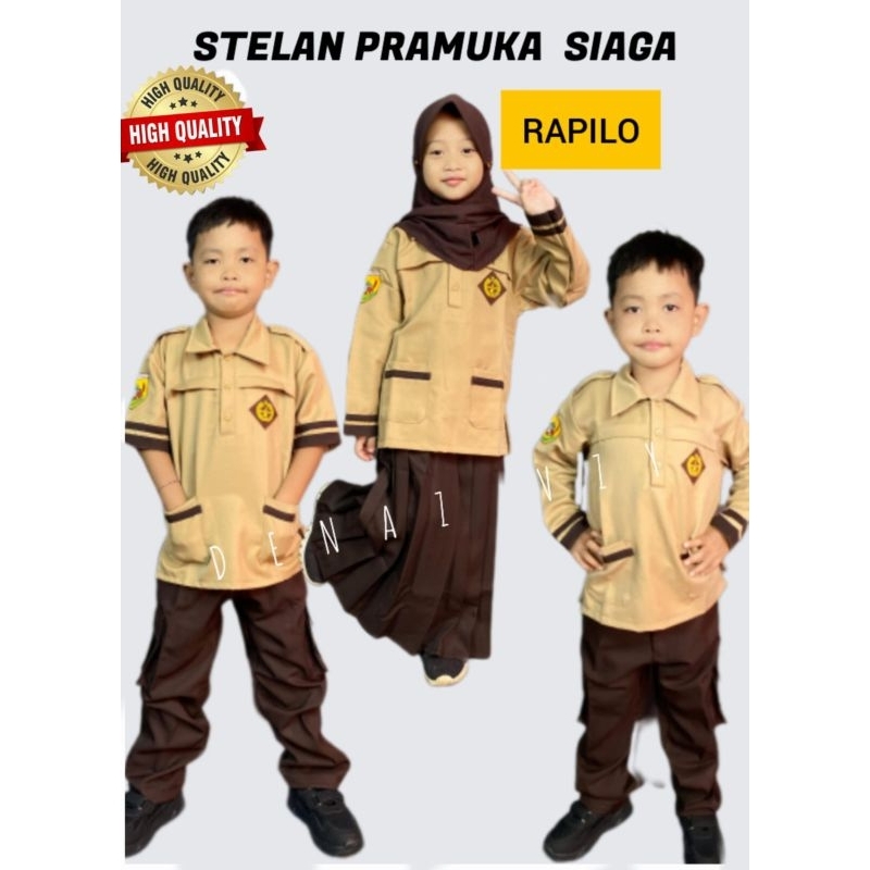 STELAN PRAMUKA SIAGA BAJU DAN CELANA BAHAN RAPILO UNTUK SD/MI, SMP/MTs, SMA