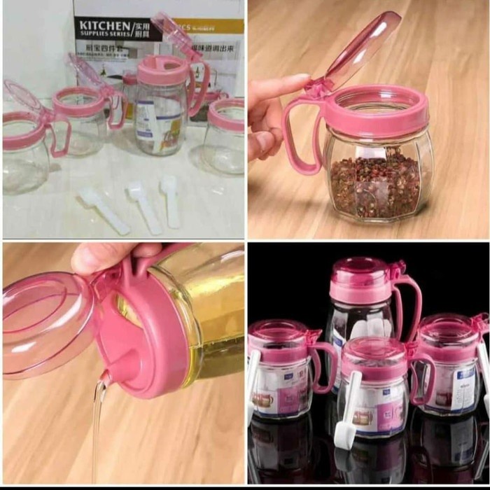 [PROMO] Botol Minyak & Tempat Bumbu Set Isi 4 PCS - Toples Tempat Bumbu Oil Pot Set - Kitchen Jar Set 4