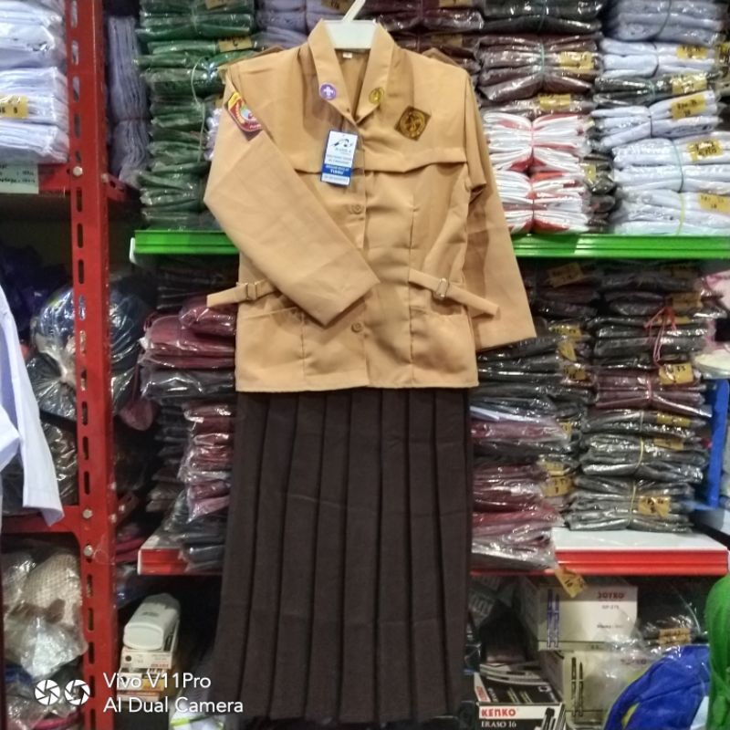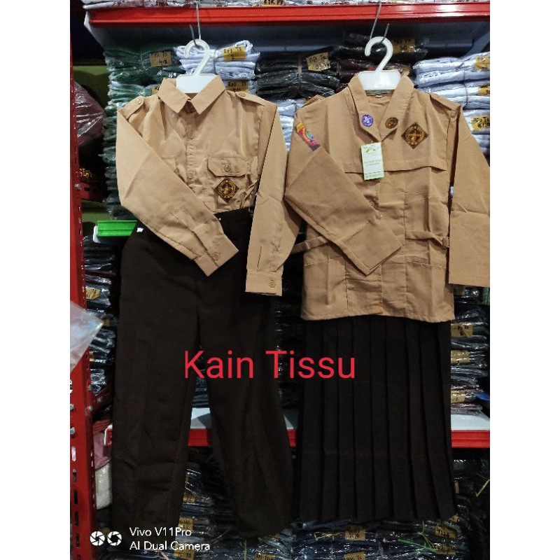 Seragam Sekolah Setelan Baju Pramuka SD Lengan Panjang Laki-laki/Perempuan Kain Tissu