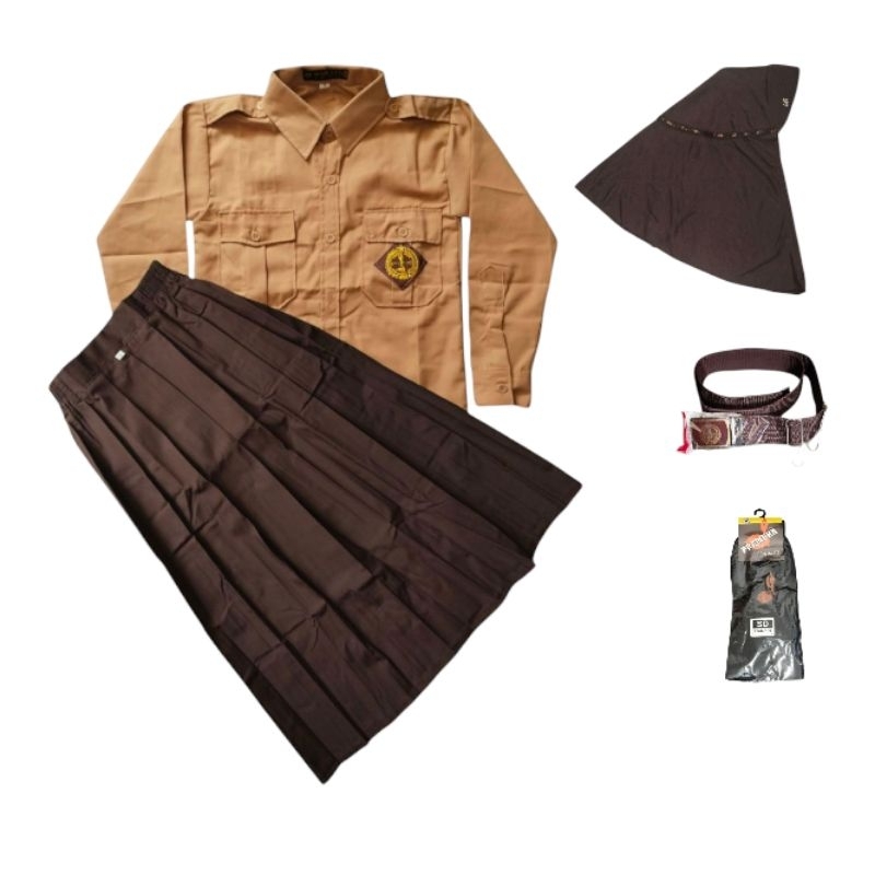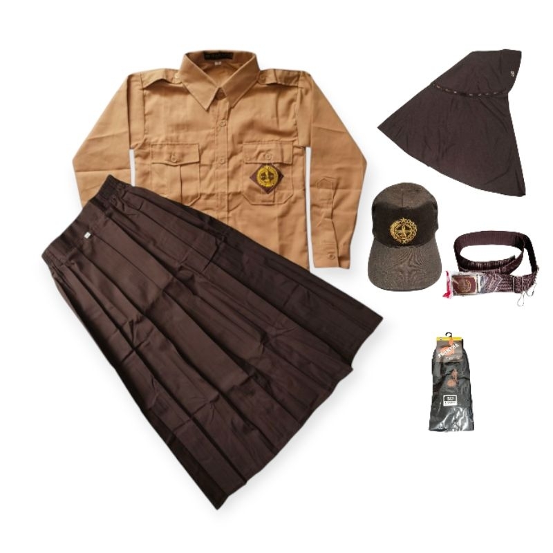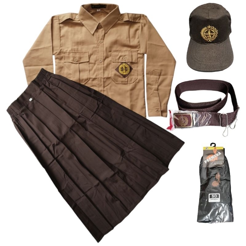 Seragam Lengkap SD Pramuka Penggalang Anak Perempuan Baju Lengan Panjang Rok Panjang Untuk Kelas 1 - 6