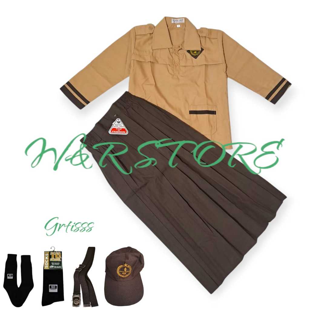 Setelan Super Lengkap Pramuka Siaga Seragam Sekolah SD Perempuan BAJU PANJANG ROK PANJANG