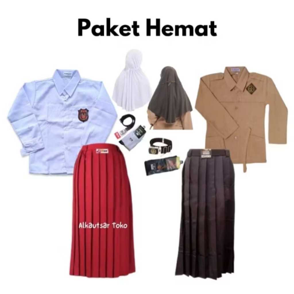 Spesial Paket Hemat Seragam SD Merah Putih dan Pramuka Perempuan Free Kerudung / Seragam Pramuka SD