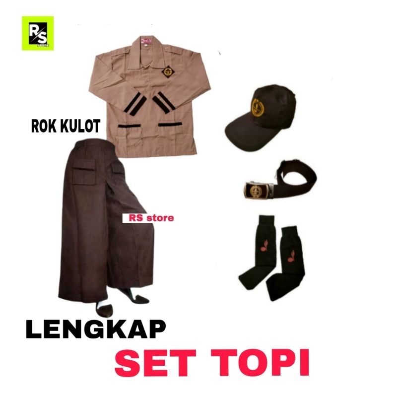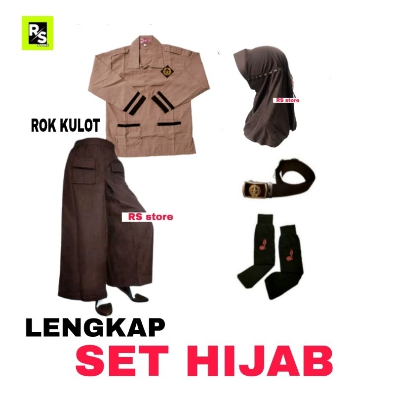 Setelan Seragam Sekolah SD Pramuka Siaga Perempuan Baju Panjang Rok Kulot Panjang Plus Hijab Lengkap