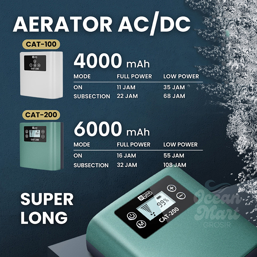 Super Silent Aerator Air Pump AC DC USB Aquarium Pompa Gelembung Udara Airator 2 Lubang Baterai Portable Oksigen Ikan