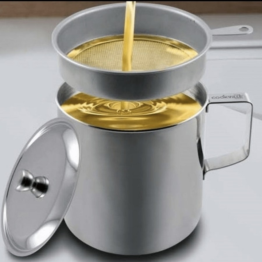 [PROMO] Oil Pot Filter 1300ml Saringan Stainless Minyak Goreng Sisa Wadah Jelantah Tempat Minyak Saringan
