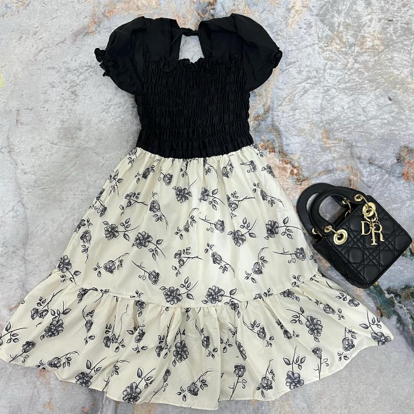 Dress Anak Combinasi Motif Flower dress anak korean terbaru