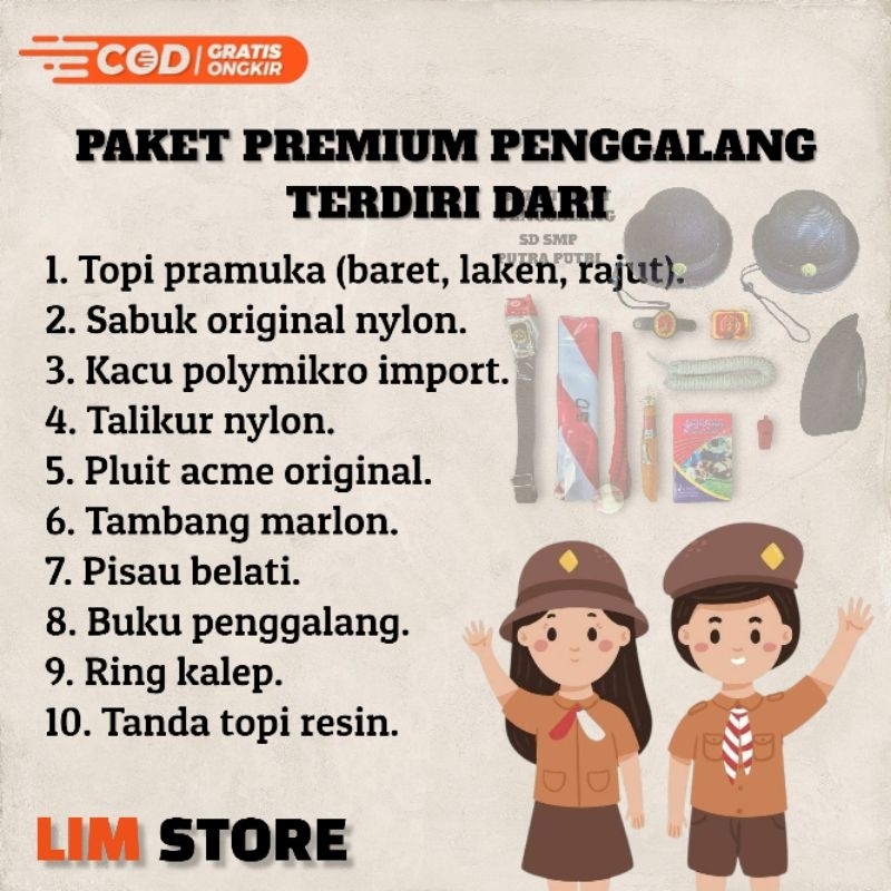 Paket Premium Penggalang SD SMP Alat Atribut Pramuka Putra Putri