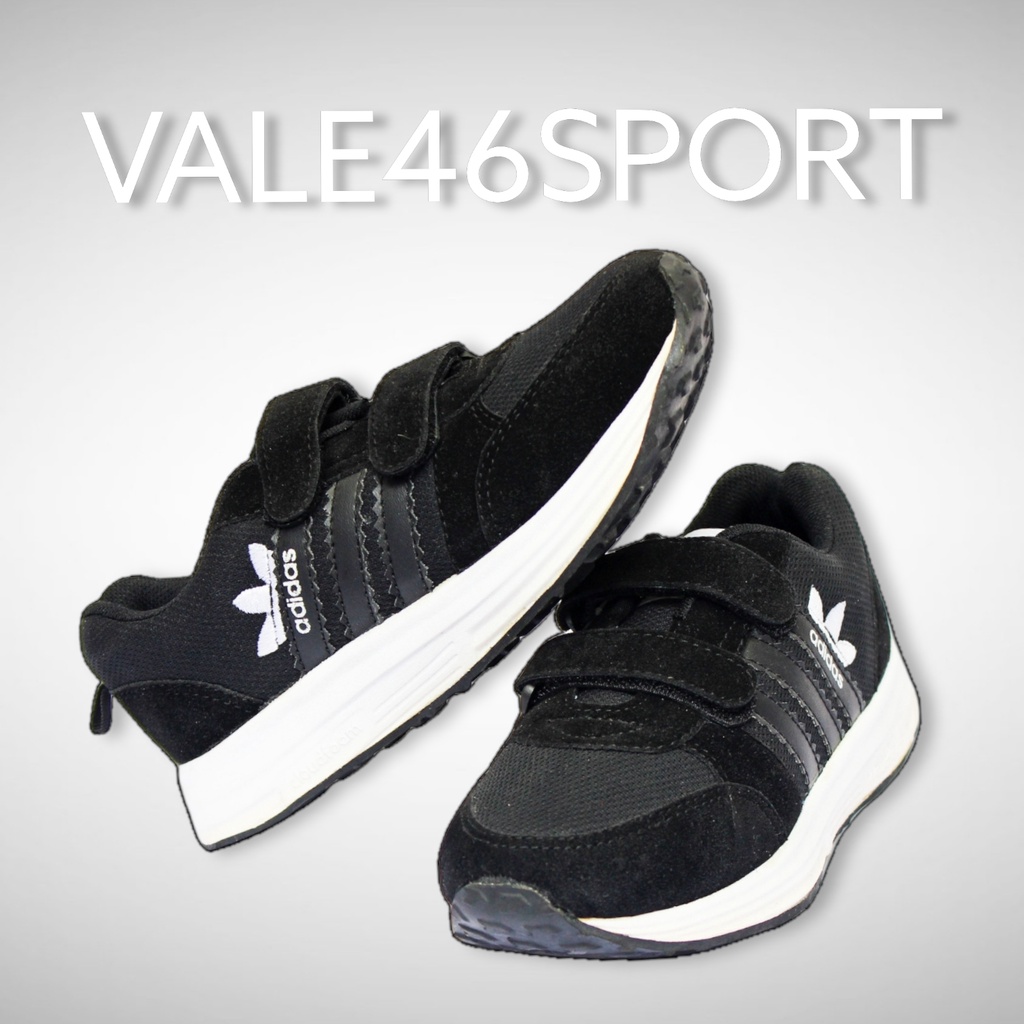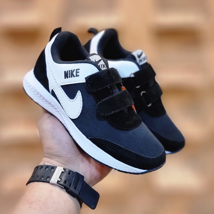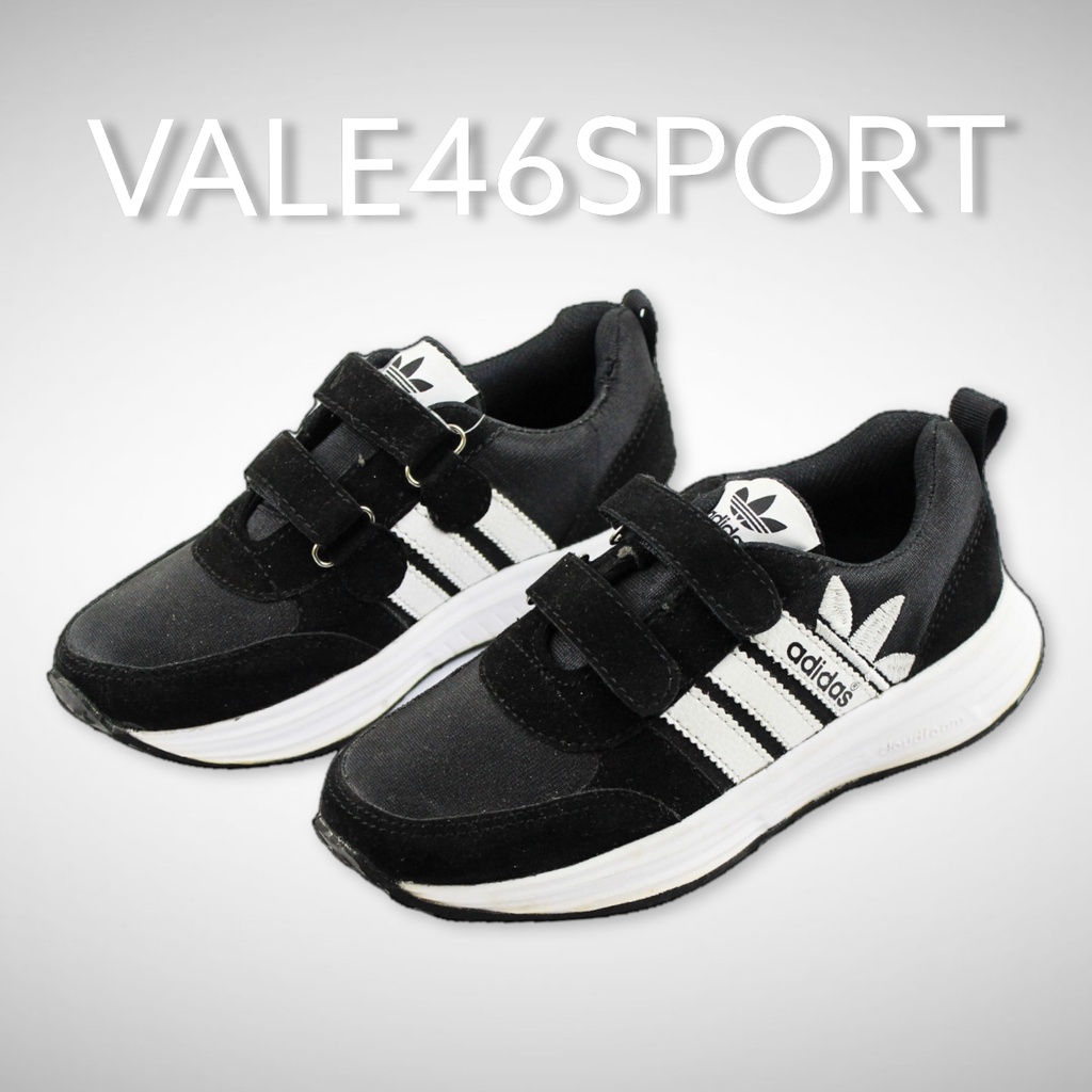 Sepatu Sneaker Sekolah Anak Anak Laki Laki Perempuan Kecil Tanggung Umur Usia TK SD SMP SMA Warna Hitam Rekat Velcro 2 3