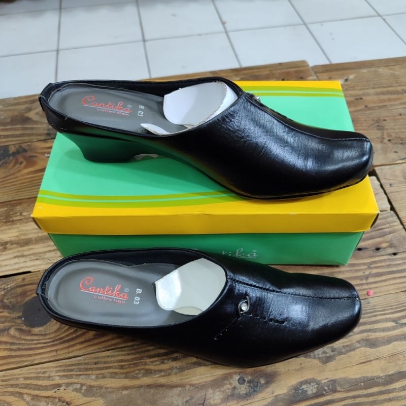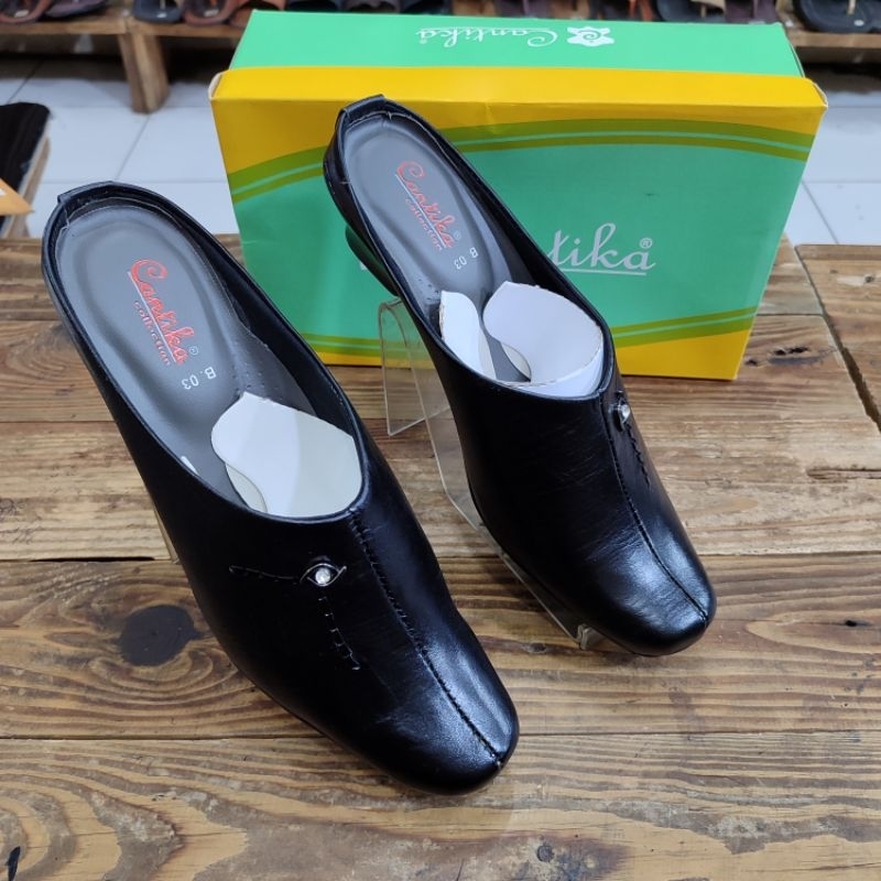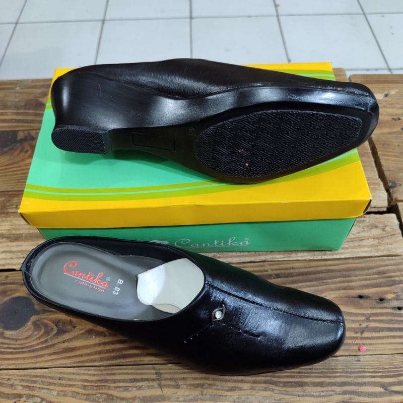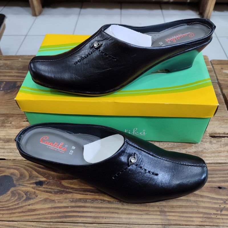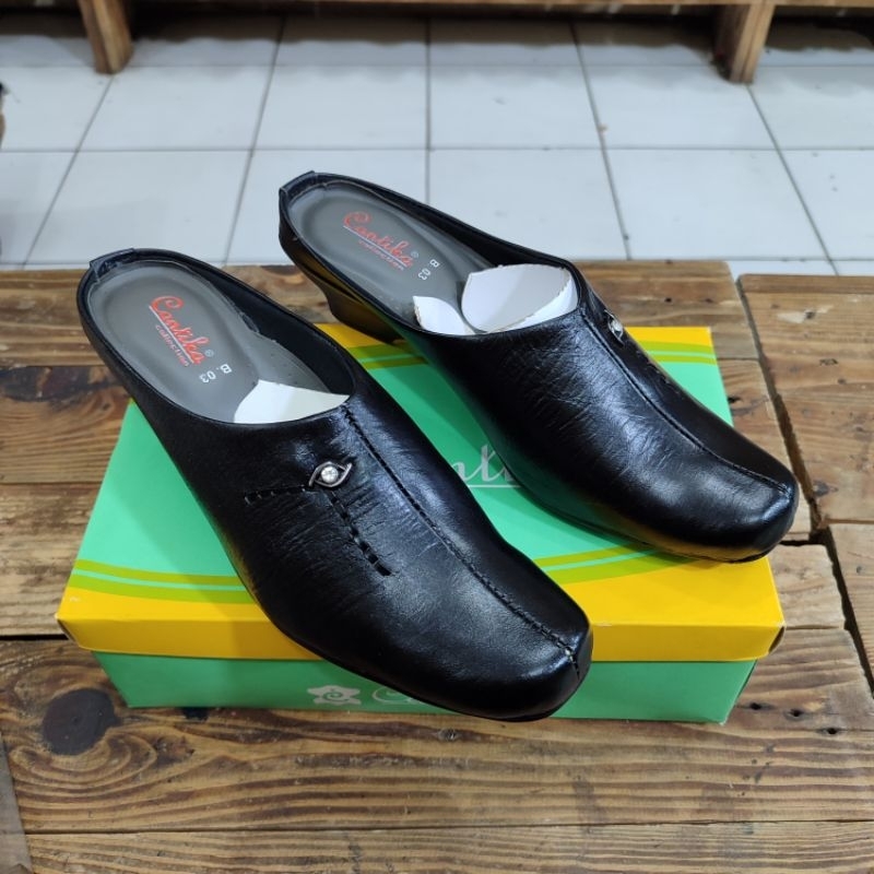 SEPATU SANDAL BUSTONG WANITA KULIT SAPI ASLI 100% - B 03 HITAM ( PRODUKSI SENDIRI )