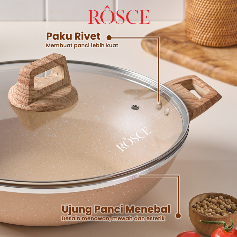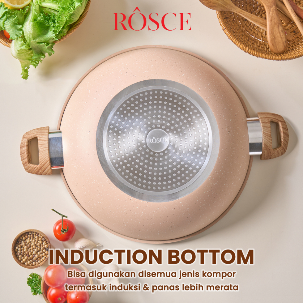 Promo wajan 2kuping ROSCE WOKY 24CM wok pan nicebrown panci granit INDUCTION BOTTOM Panci anti lengket