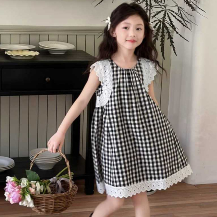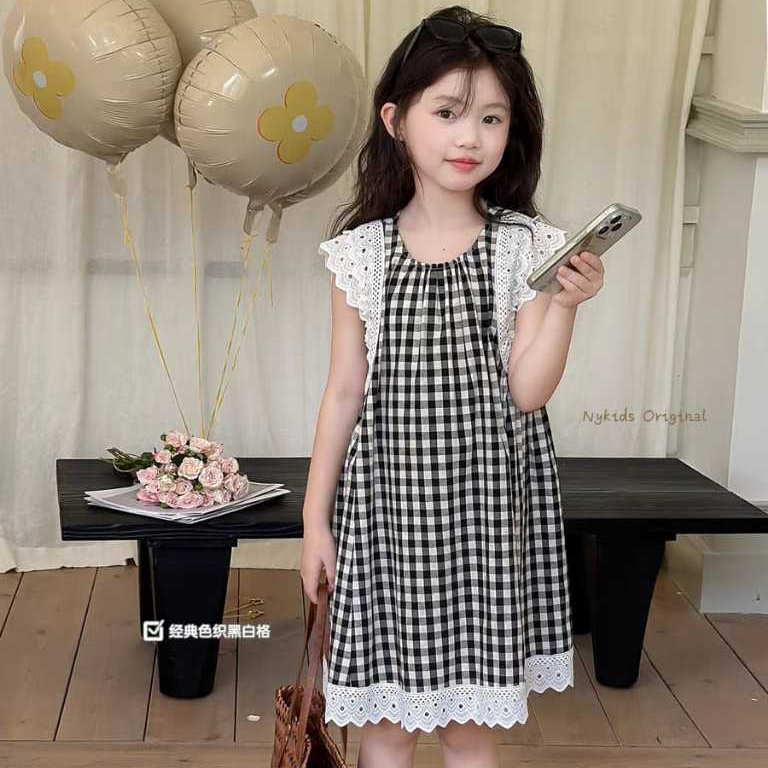 Dress Anak 1-8 Tahun NEW! Dress Anak Perempuan Korean Style Kotak Renda QZ-180