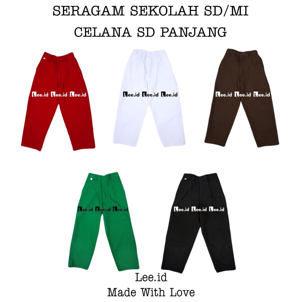 Celana Panjang Sekolah SD Laki Laki Seragam Sekolah SD MI Celana Panjang Merah Coklat Putih Hitam Hijau Kelas 1 - 6 SD