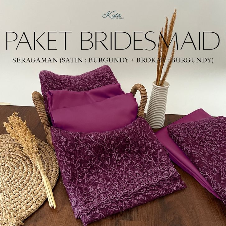 PAKET KAIN BRIDESMAID PREMIUM LENGKAP SATIN KEBAYA BROKAT WARNA BURGUNDY