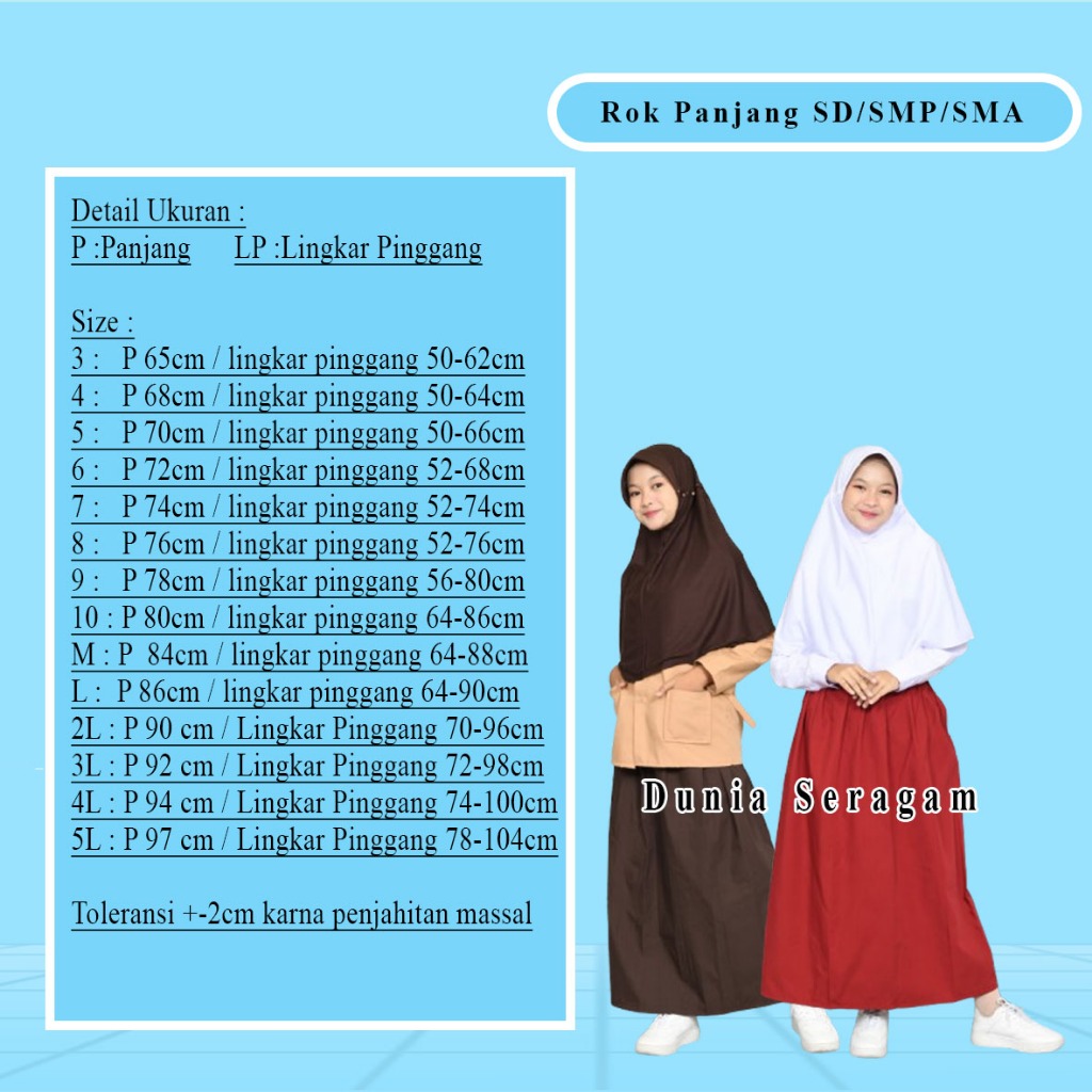 Rok Sekolah Sd Smp Sma Panjang Perempuan Merah Putih Hijau Hitam Coklat Pramuka Bahan Drill Bagatex
