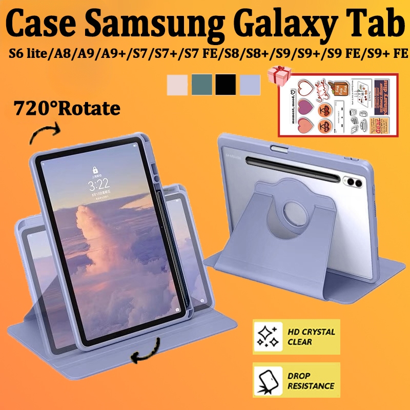 CASE TAB CASE TAB Casing Samsung Galaxy Tab S6 Lite/S7 FE 720°Rotate Flip Case A9 S9 PLUS Autolock Foldable Cover S7 Plu