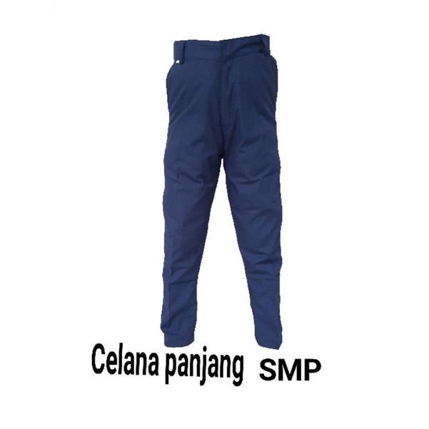 seragam sekolah celana panjang biru/ celana panjang putih untuk mts/smp, aliyah/sma, kuliah kerja model depan saku 2 bel