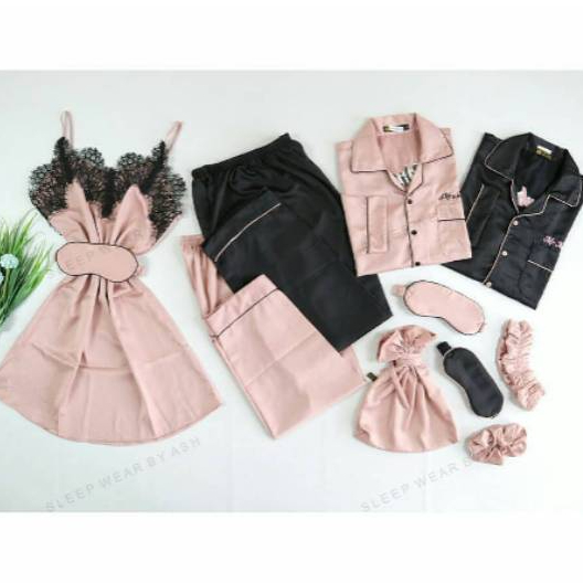 PRE-ORDER Piyama Couple Set 3 in 1 Mini Dress Serena Ashlar | Best Seller | Seserahan Pernikahan