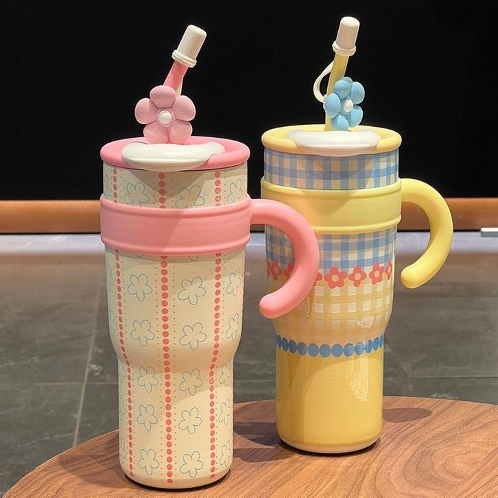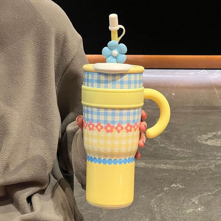 Tumbler Aesthetic Keramik Stainless Botol 1200ml Tumblr Lucu BPA Free Botol Minum Anak Tahan Panas Dingin