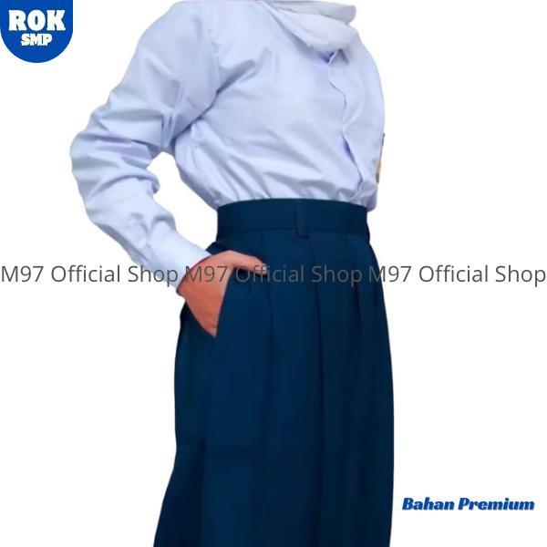 Rok Panjang SMP Biru Rempel Premium - Rok Seragam Sekolah SMP Panjang Biru Rempel lipit Atas