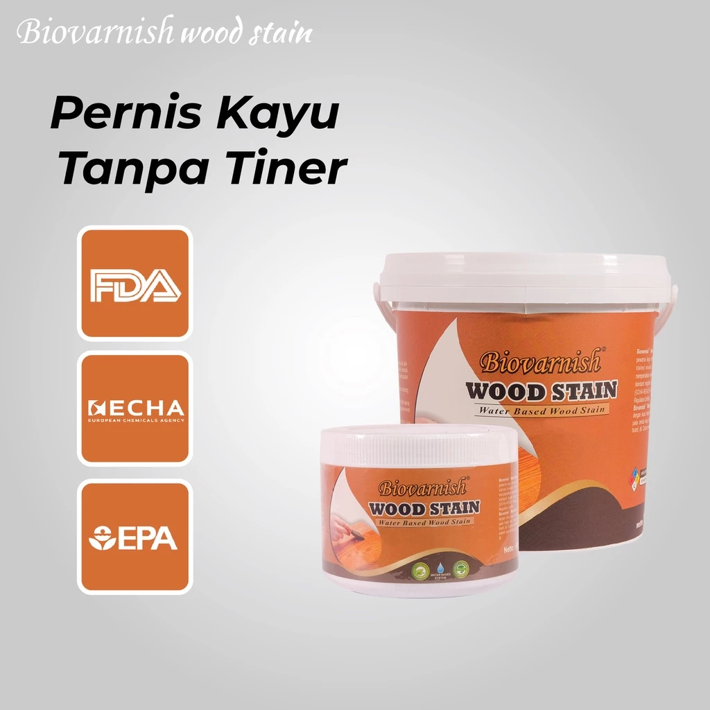 ( TERLARIS ) Woodstain Biovarnish 1 Kg Pernis Kayu Acrylic Waterbase Stain Cat Warna Kayu