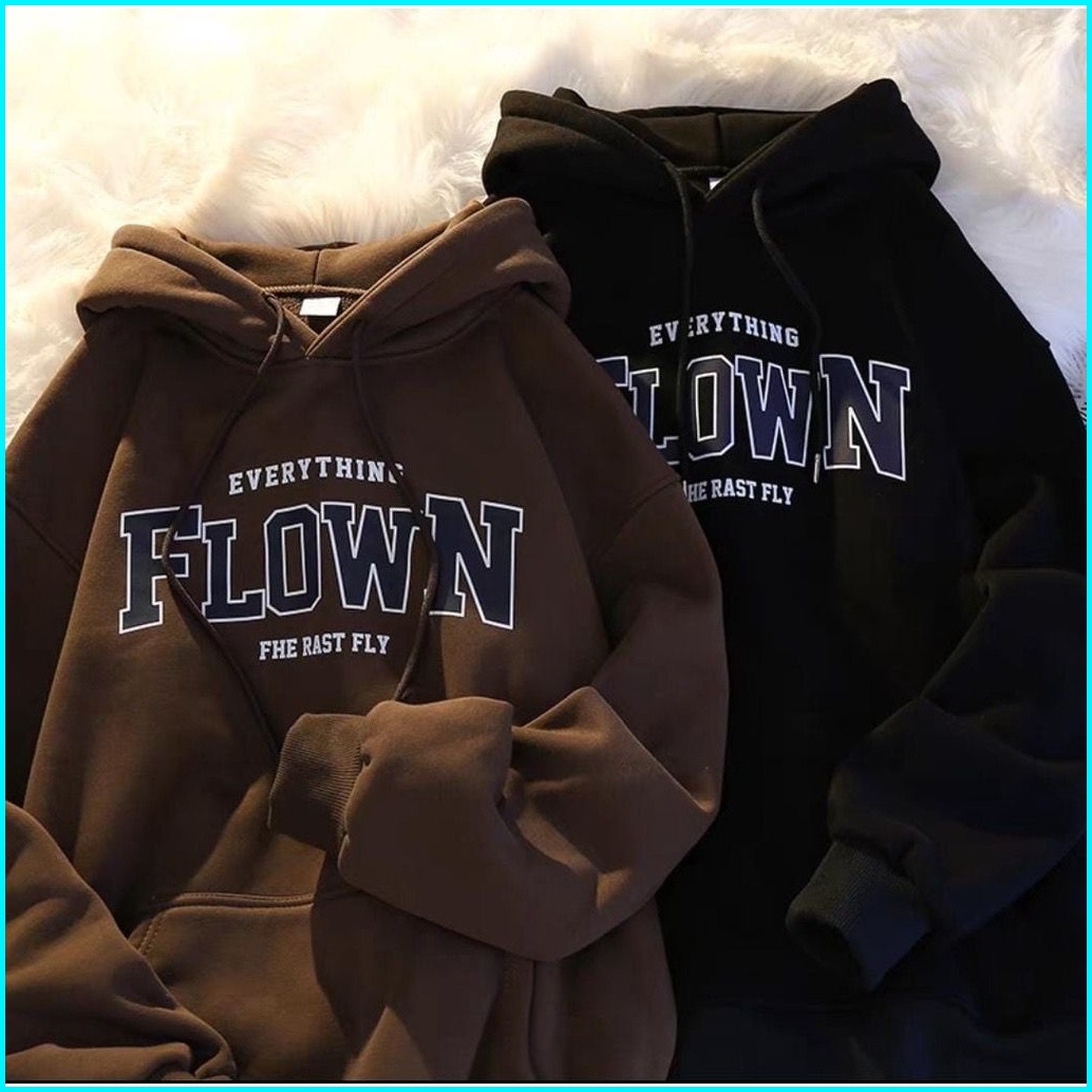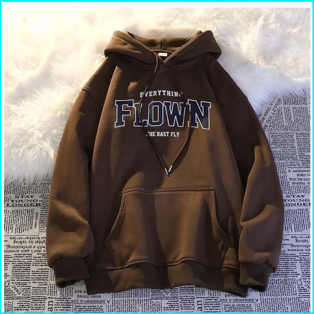 Flown Hodie Sweater Oversize Unisex Wanita Pria Bahan Fleece