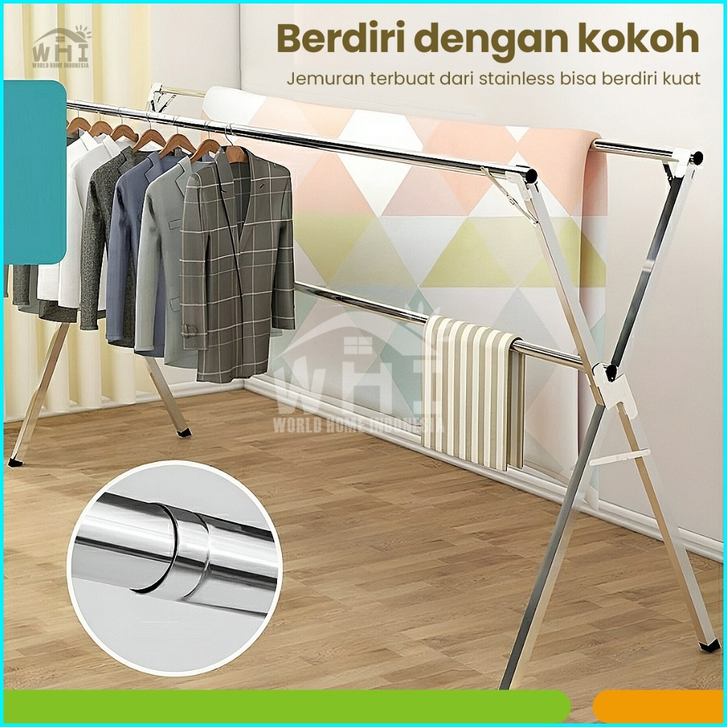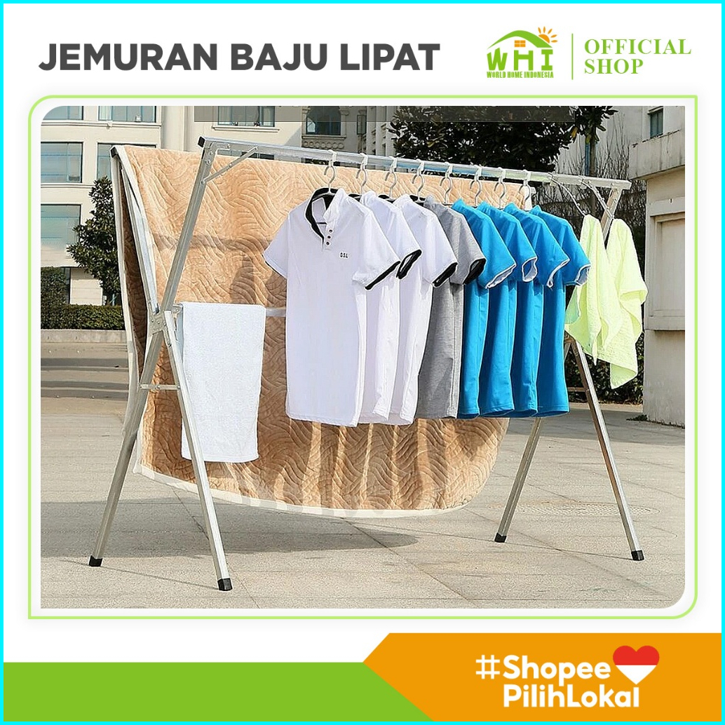 World Home Jemuran Baju Lipat Jemuran Pakaian Anti Karat Kuat Jemuran Baju Portable Jemuran Lipat