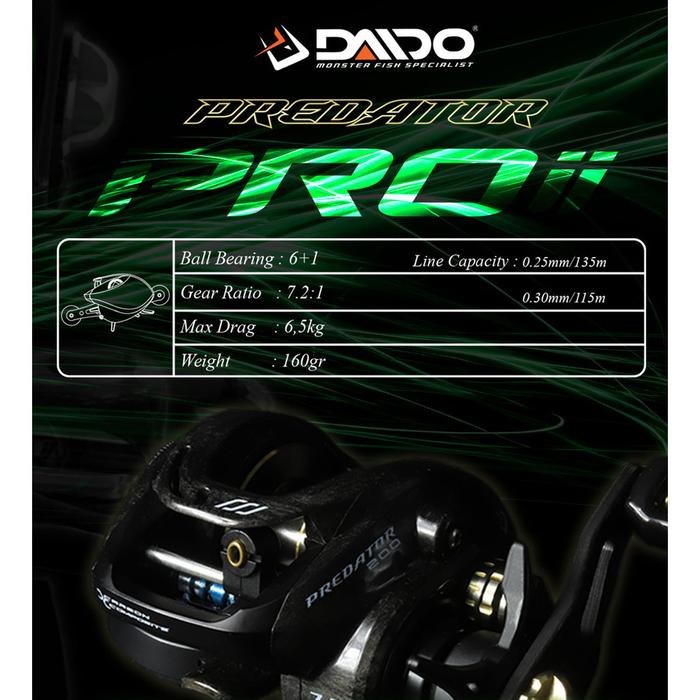 Reel BC BaitCasting Daido New PREDATOR PRO II 200 SW Kiri (6+1 Bearing) 7.2:1 SaltWater Murah - Toms
