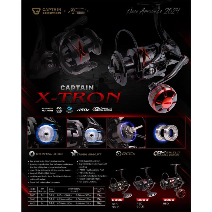 Reel Pancing CAPTAIN X-TRON 2000 / 3000 / 6000 Gold Label (9+1 Bearing) Power Handle - Toms Fishing
