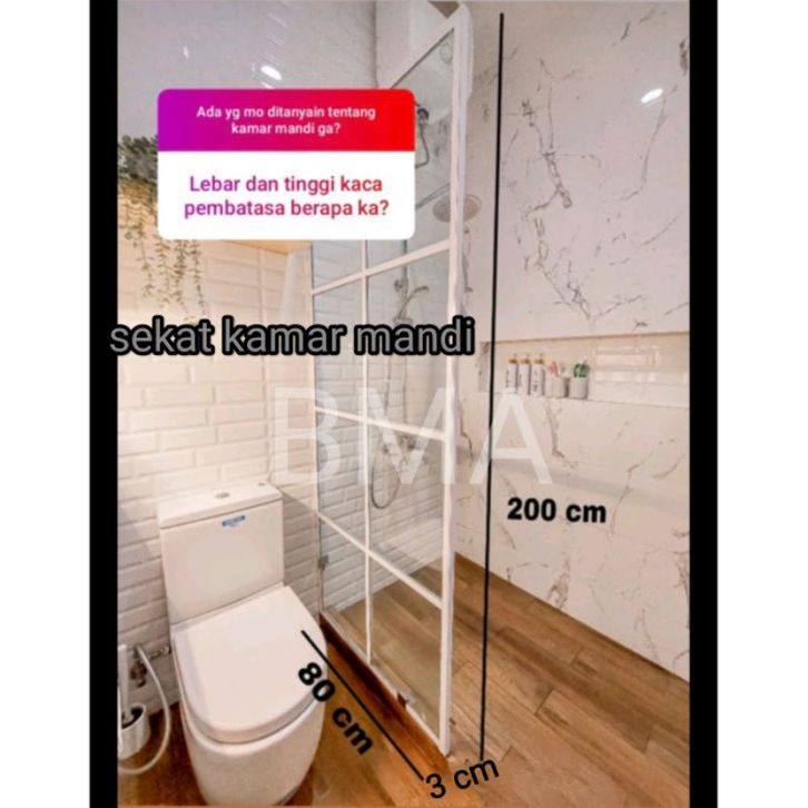 Sekat Kaca Kamar Mandi Ornamen Variasi Kotak 80x200/70x200/60x200