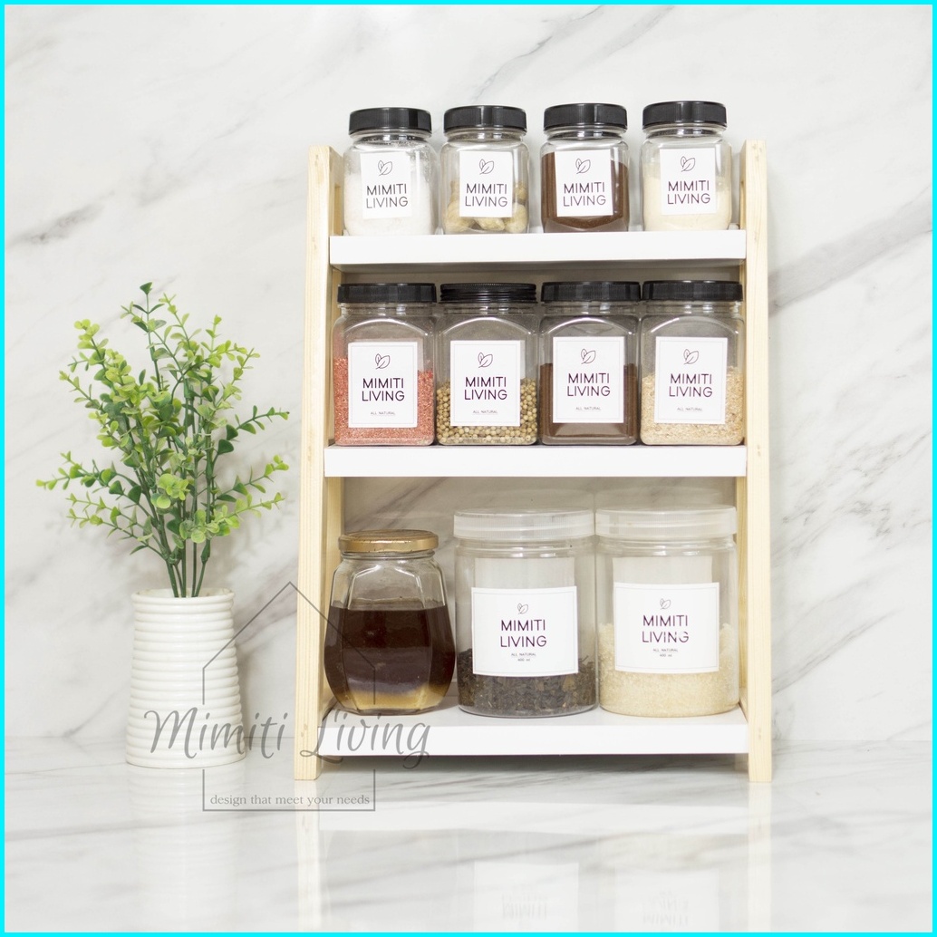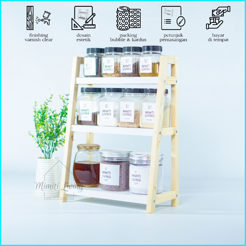 Rak Bumbu Dapur Serbaguna 3 Susun Medium Rak Kosmetik Rak Kayu Serbaguna Multifungsi