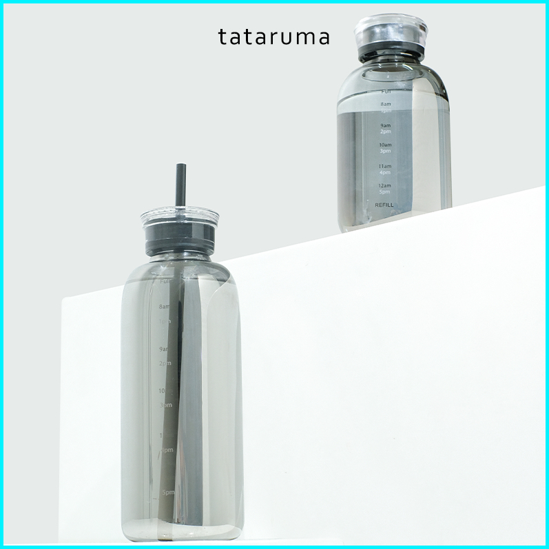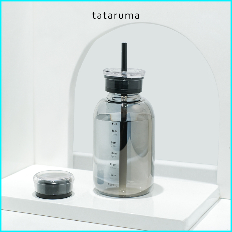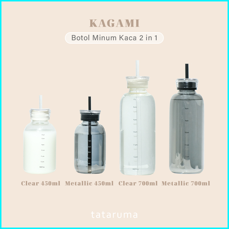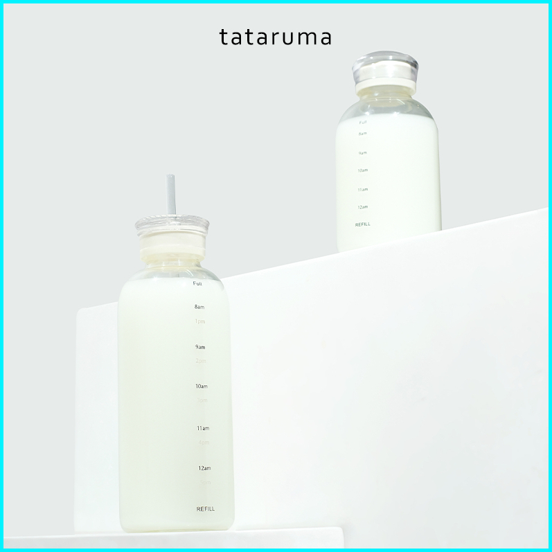 Tataruma Kagami - Botol Minum Kaca Tutup Ganda Sedotan Dengan Skala Waktu Anti Bocor