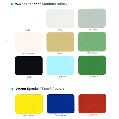 BELAZO BEPOXY CLEAR , EPOXY GUARD CLEAR, EPOXY GUARD 15 WARNA, MX 99 CLEAR, MX 99 12 WARNA , EPODUR 19 WARNA , CLEAR, WHITE , BLACK , ALABASTER , TERN GREY, CLOUD GREY , SIGNAL RED , CANARY YELLOW, GREEN TILE, SIGNAL GREEN, GREY GREEN , EGGSHELL GREEN, SKY BLUE, MEDIUM BLUE, BLUE TILE