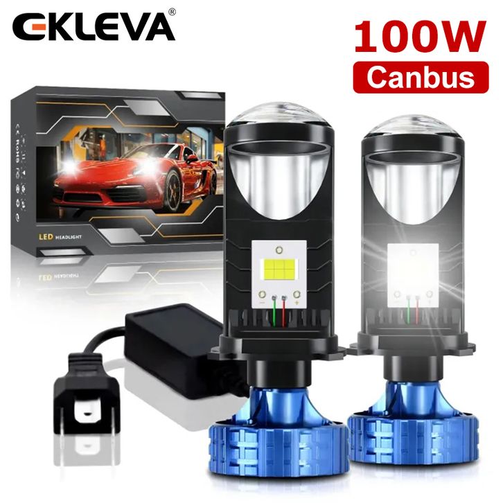 EKLEVA 2PCS Headlight Mobil LED Super Terang 12V/24V 100W 6500K Lampu Mobil Depan H4