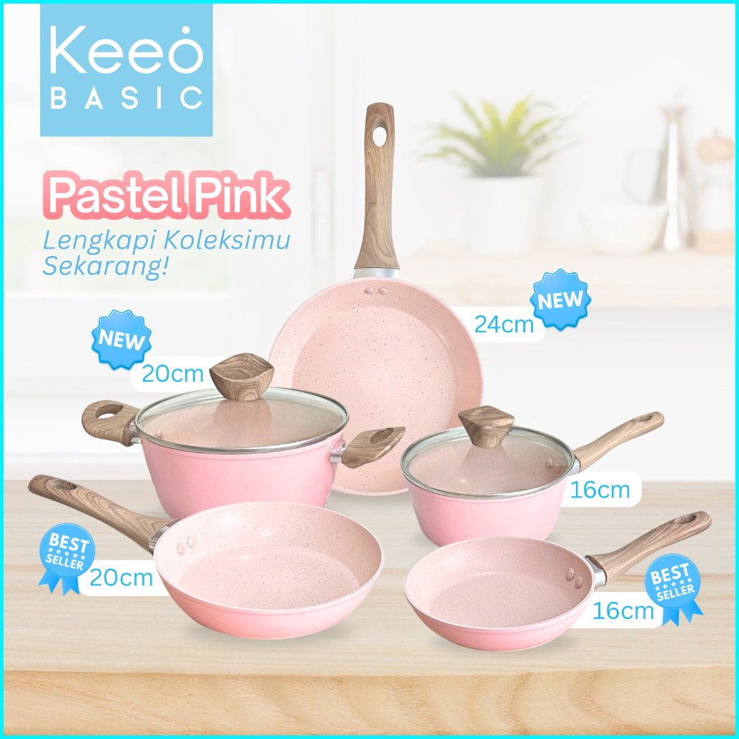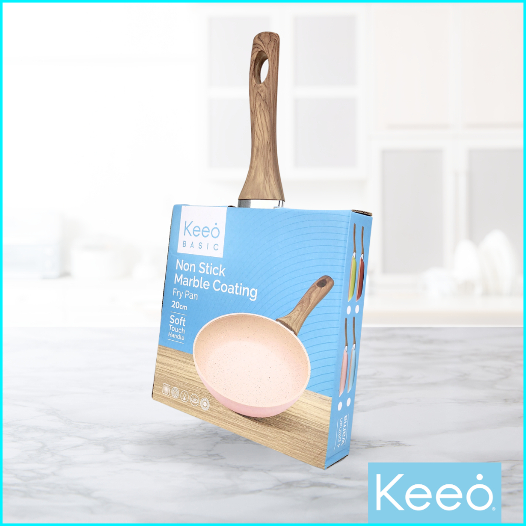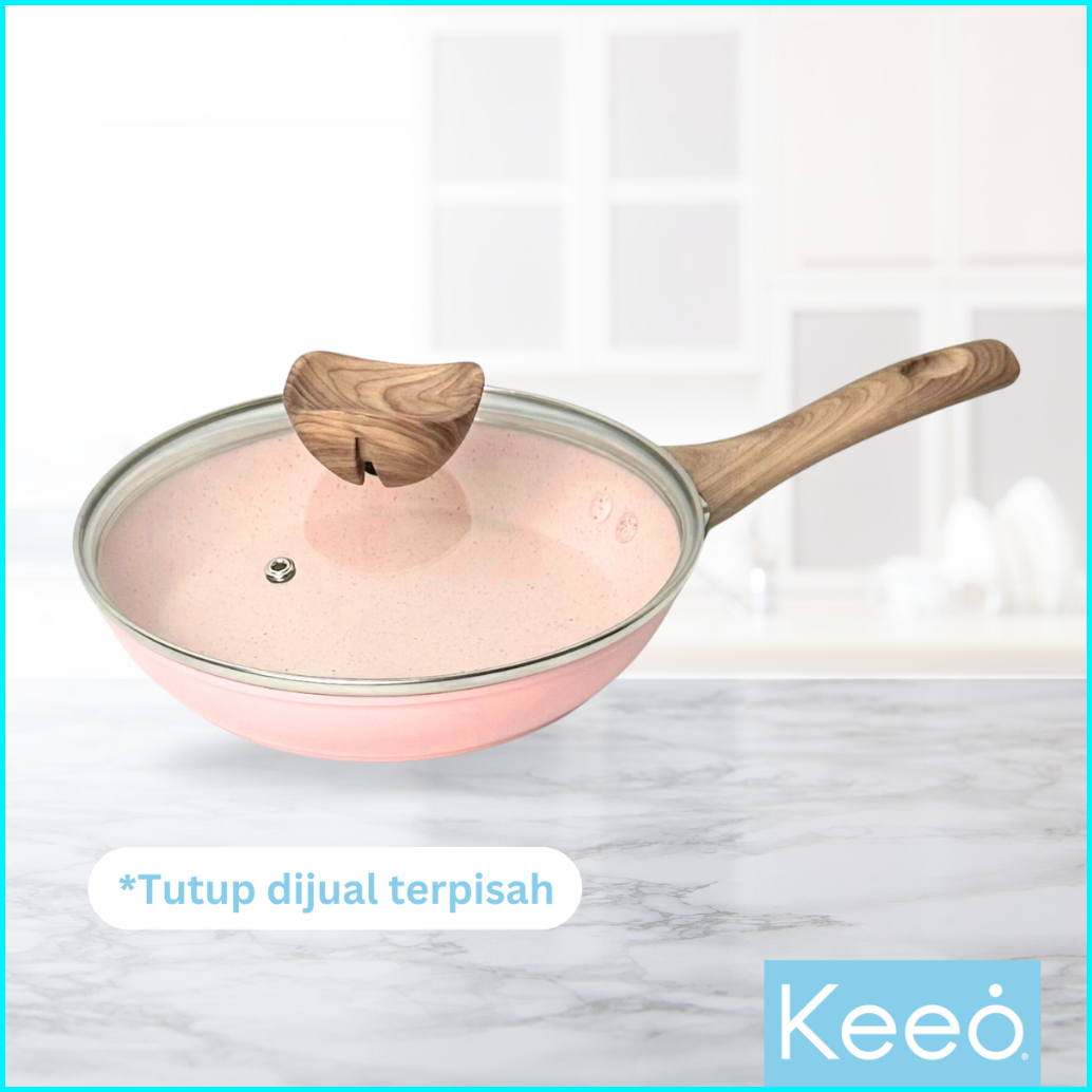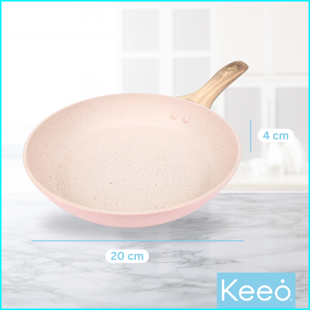 Keeo 20 Cm Wajan Teflon Penggorengan Frypan Anti Lengket Marble Granit Pink