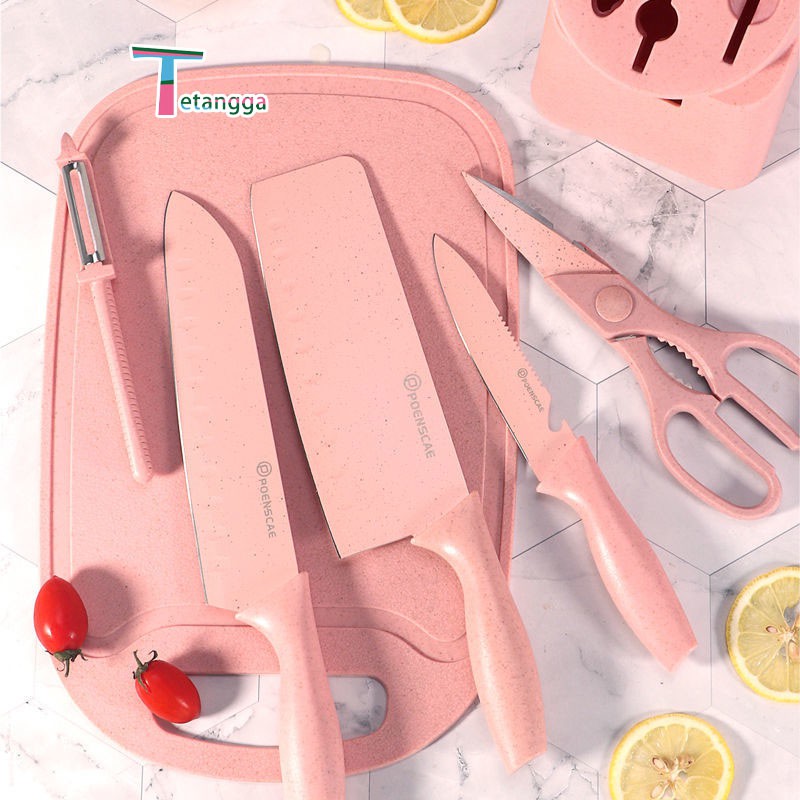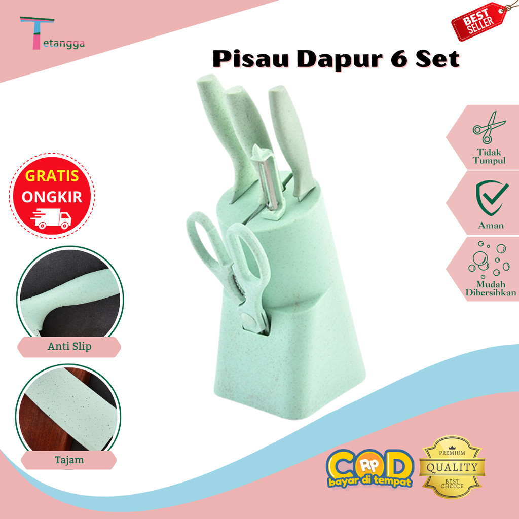 Alat Dapur Set 6 In 1 Knife Dengan Wadah Pisau Jerami Gandum Berkualitas